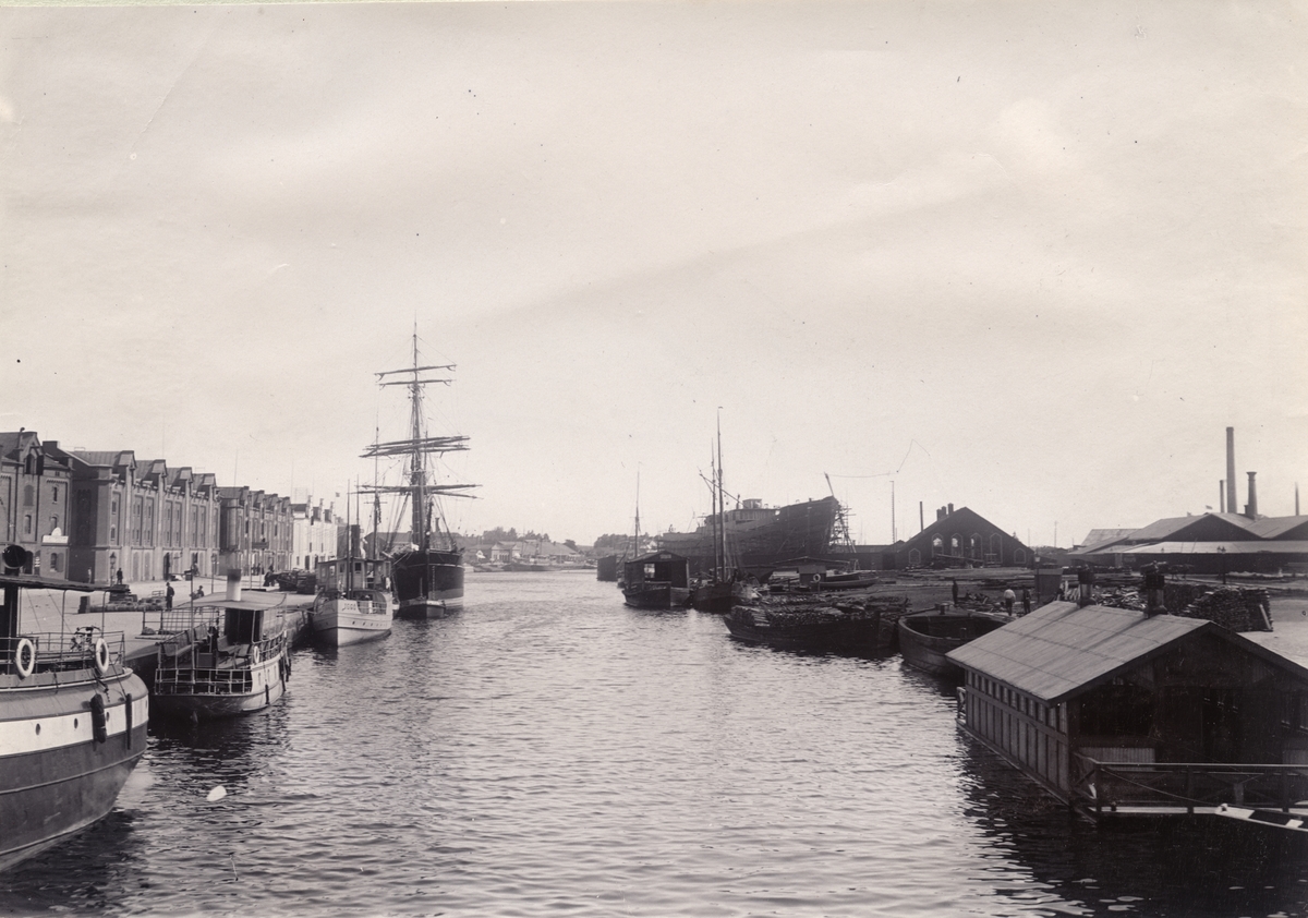 Hamnen och varvet i Gefle (Gävle), 1901. Bild från tidskriften Hemmets bildmaterial.