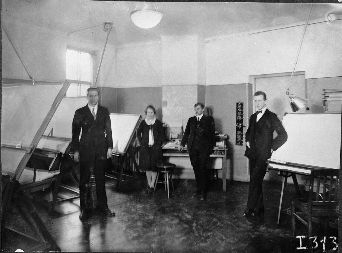 Elektrolux-Laboratoriet. Laboratoriets ritkontor med personal.