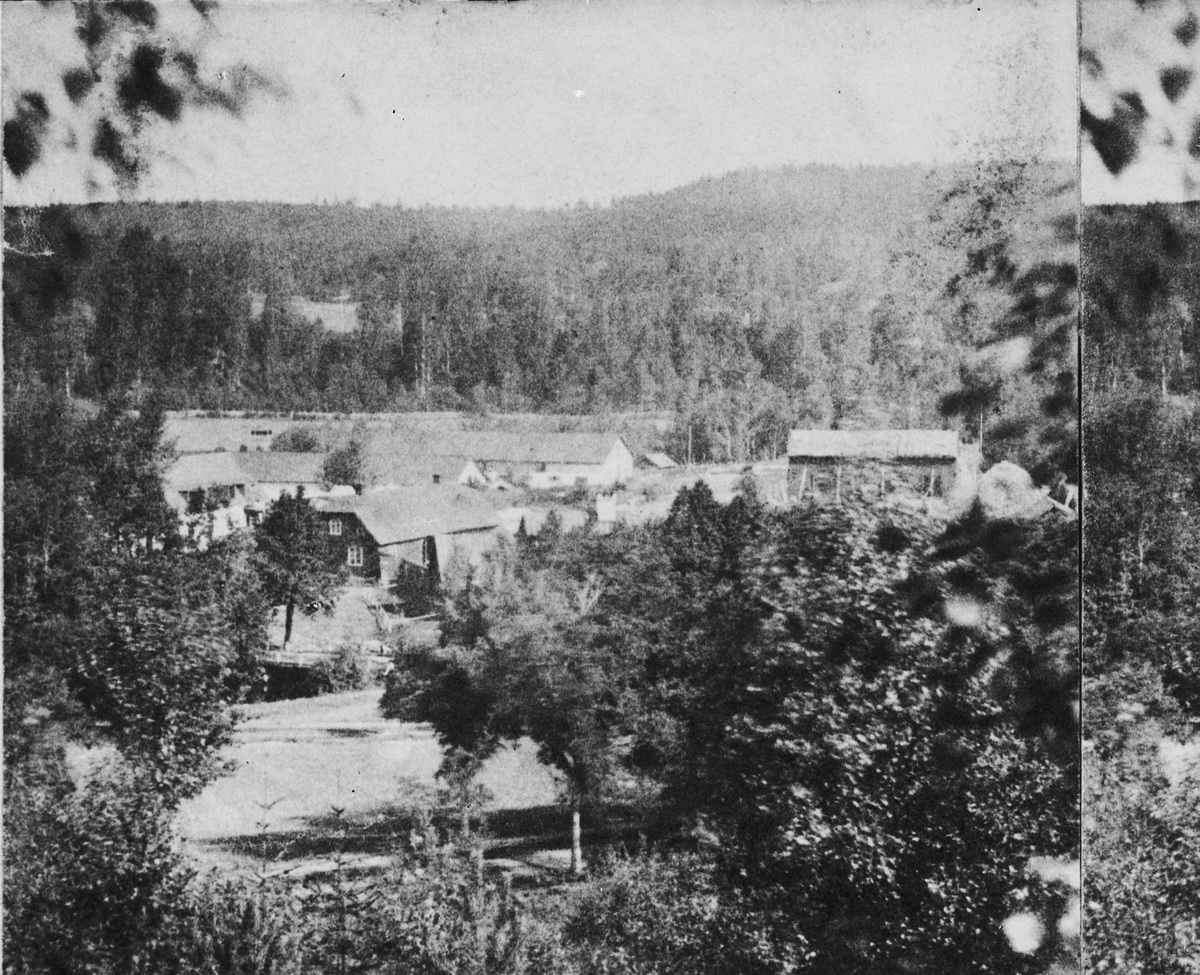 Foto av foto tillhörande Postmästare Helmer Lagergren, Falun (1942). Parti av Kosters Bruk 1865. >>
