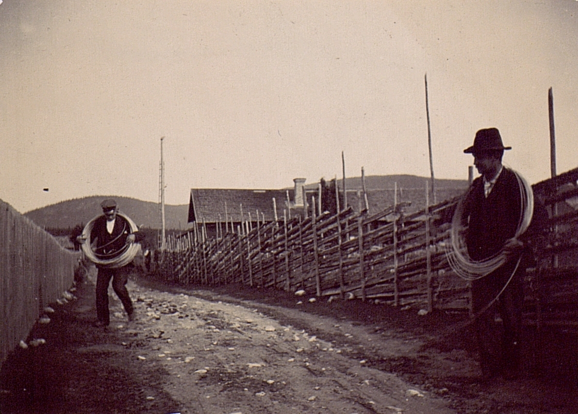 Telefonnät och naturmotiv från Norrland omkr. 1900. Linjearbete.
