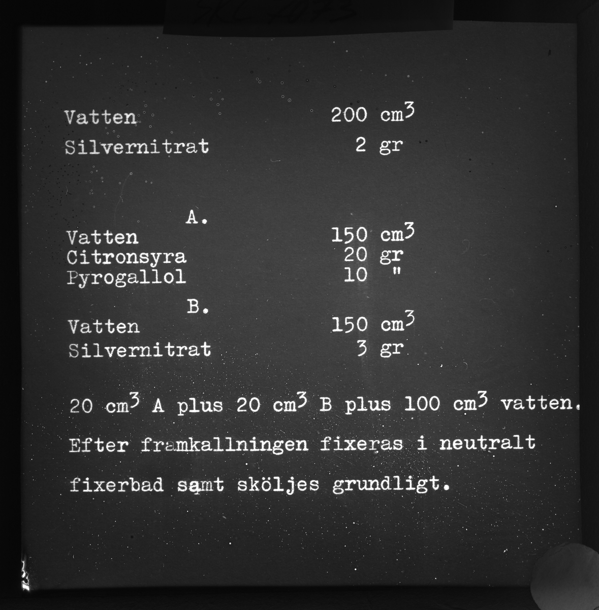 Skioptikonbild från Institutionen för fotografi vid Kungliga Tekniska Högskolan. Använd av professor Helmer Bäckström som föreläsningsmaterial. Bäckström var Sveriges första professor i fotografi vid Kungliga Tekniska Högskolan i Stockholm 1948-1958.