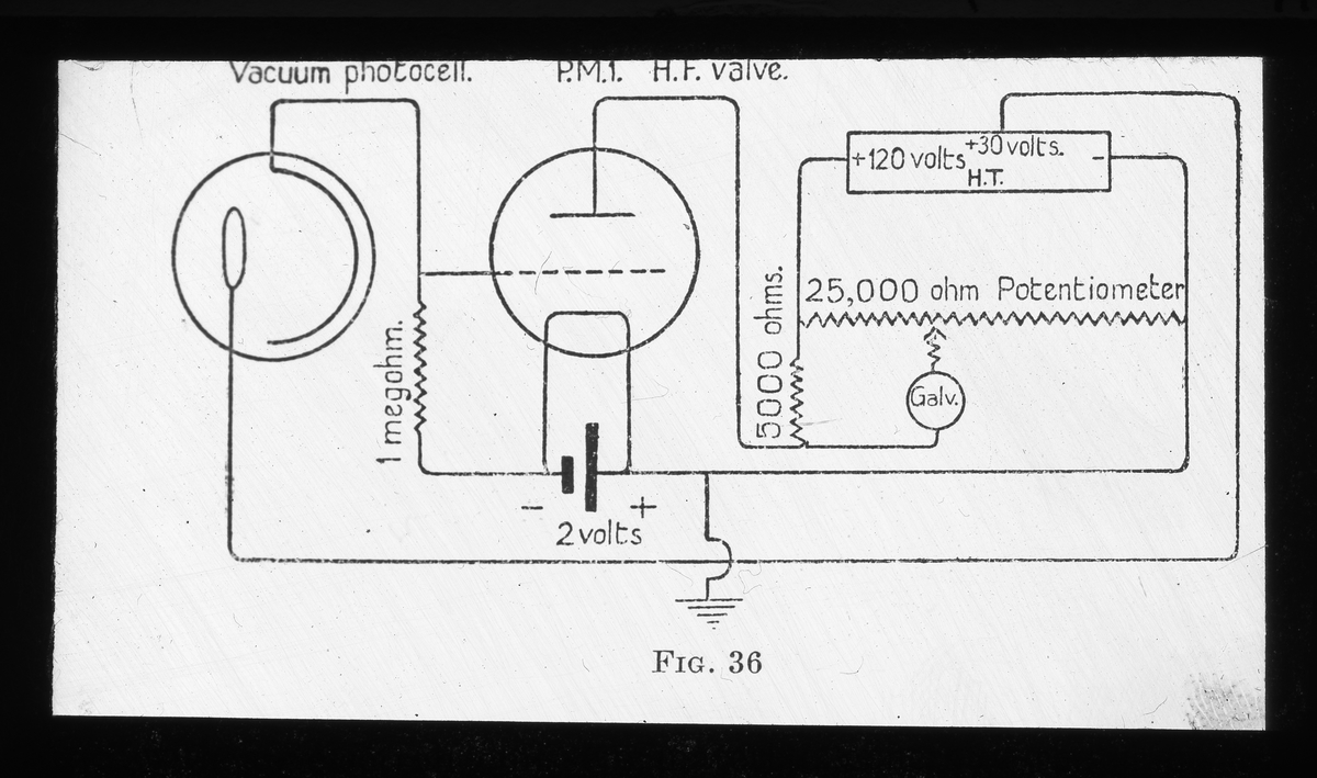 Skioptikonbild från Institutionen för fotografi vid Kungliga Tekniska Högskolan. Använd av professor Helmer Bäckström som föreläsningsmaterial. Bäckström var Sveriges första professor i fotografi vid Kungliga Tekniska Högskolan i Stockholm 1948-1958.