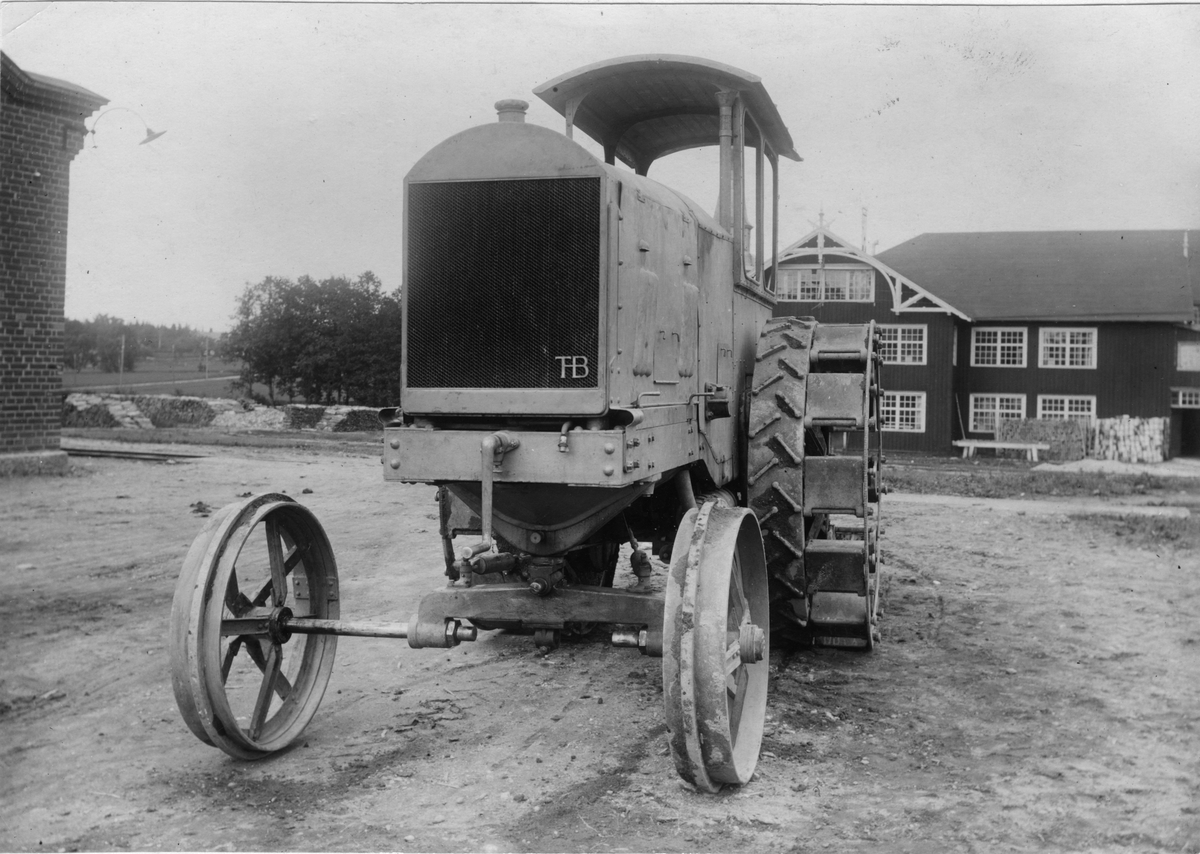 Titel: Traktor från Tidaholms Bruk AB. Bilden tagen utanför företagets lokaler för fordonstillverkning.