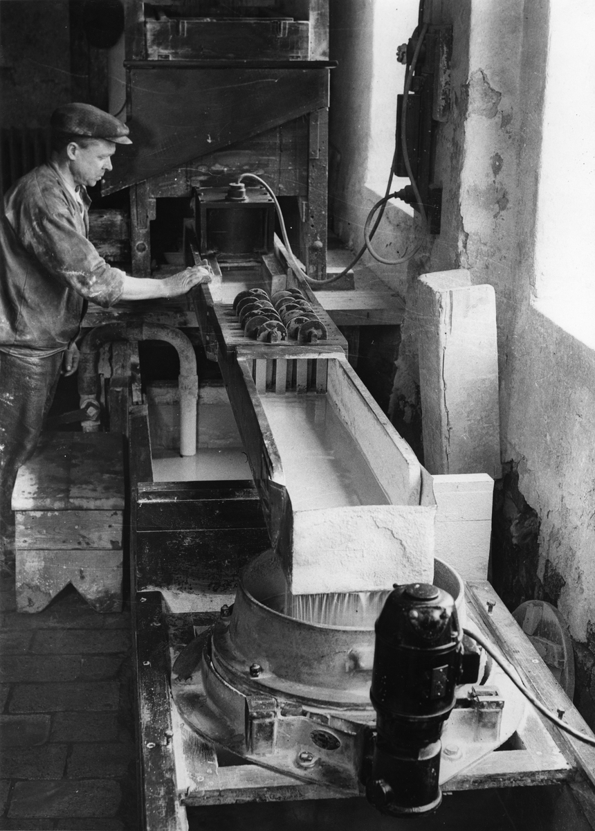 Gustavsbergs Porslinsfabrik. Modellering av form för tillbringare.