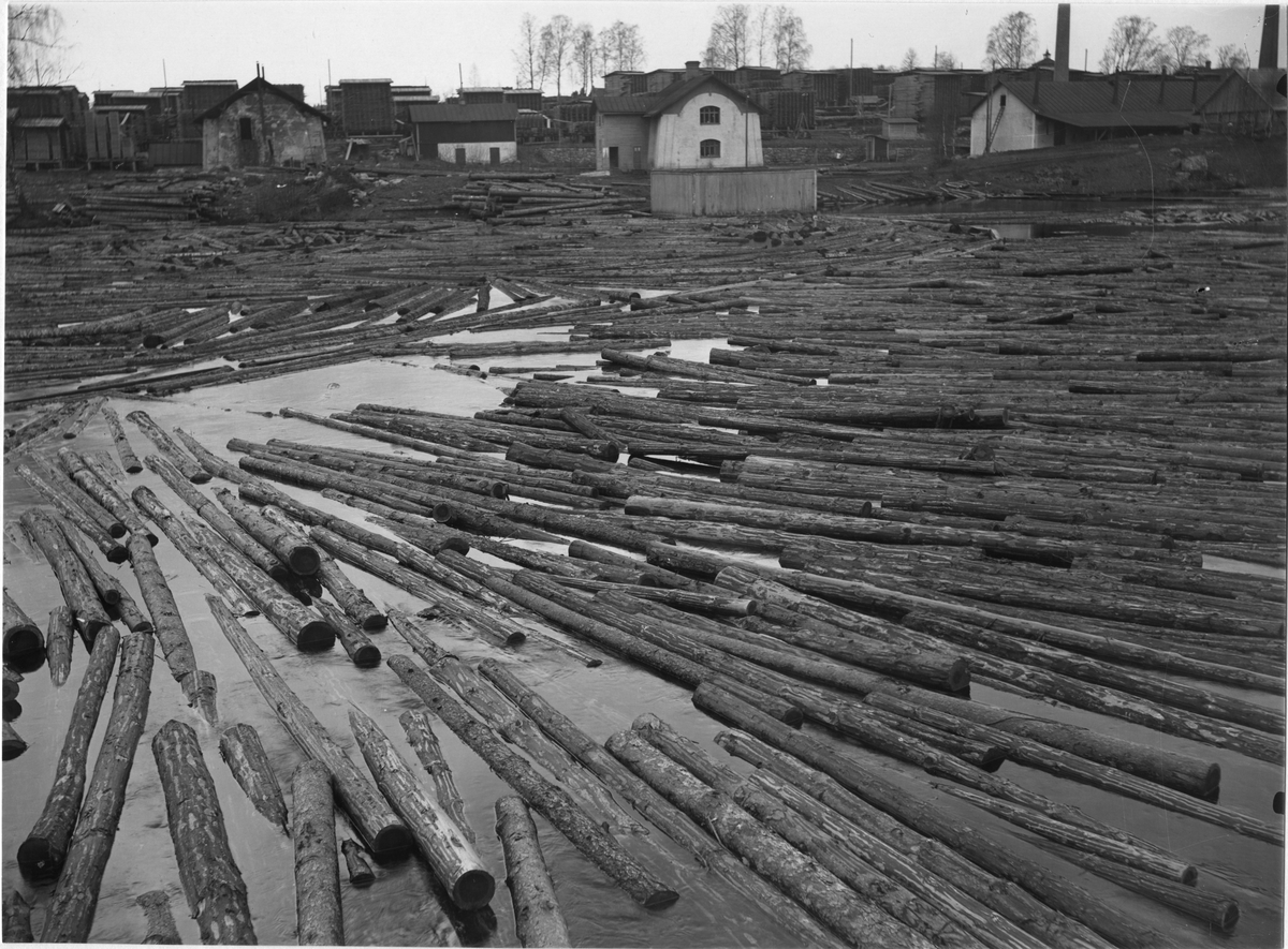 Vy över sågdammen och brädgården. Boxholms bruk.