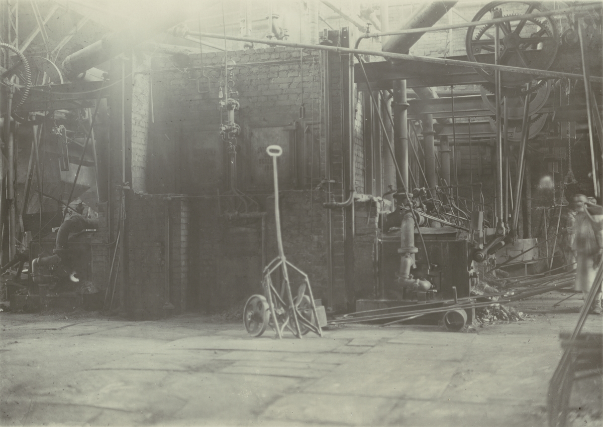 Boxholms Järnverk. Lancashiresmedjan omkring 1917.