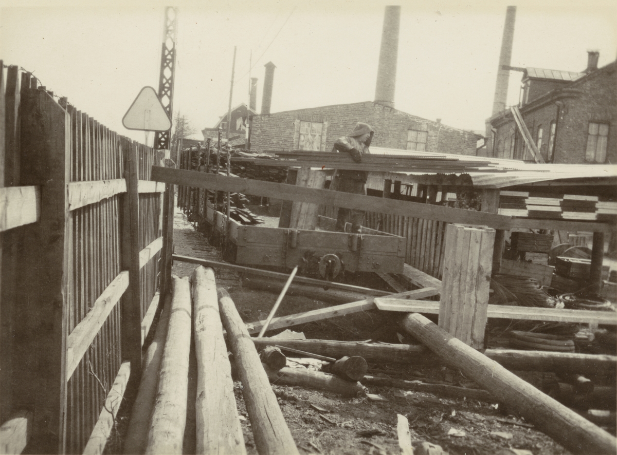 Finnvikskabeln. Lossning av kreosotvirke. Ur albumet Kabelarbetet Hjälmsälra (Hjälmsättra) - Norrtälje - Finnviken utfört under sommaren 1928.
