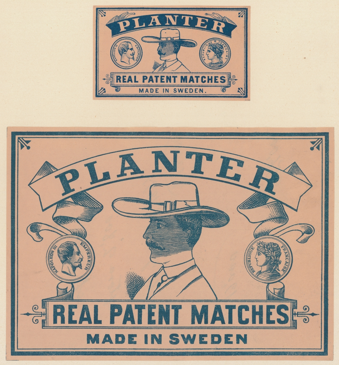 Etiketter för tändsticksaskar, från Svenskt Industri- och Handelsmuseum.