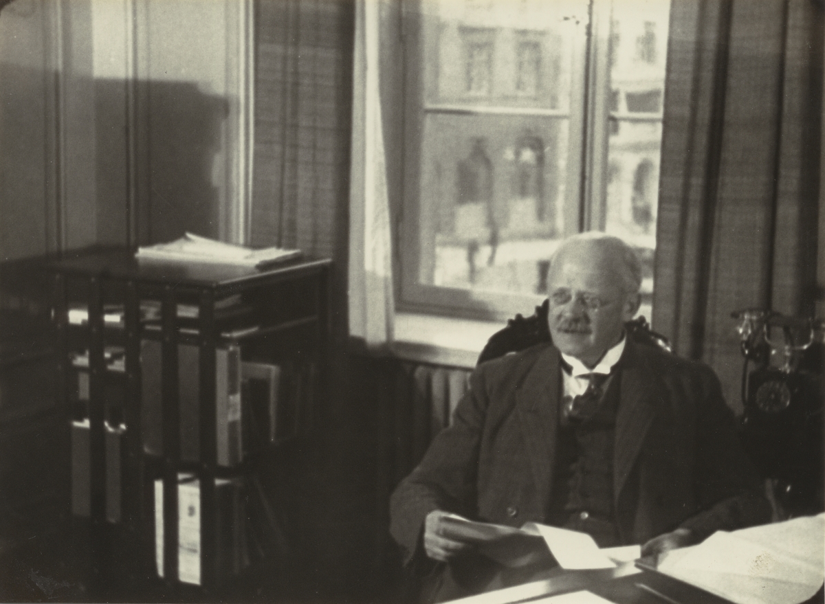 Byråchef Olson vid sitt skrivbord. Ur albumet "Klipp ur filmen Telegrafverket 1928" av Notarie H. Heimbürger. Utgiven av Svenska Filmer A. B.