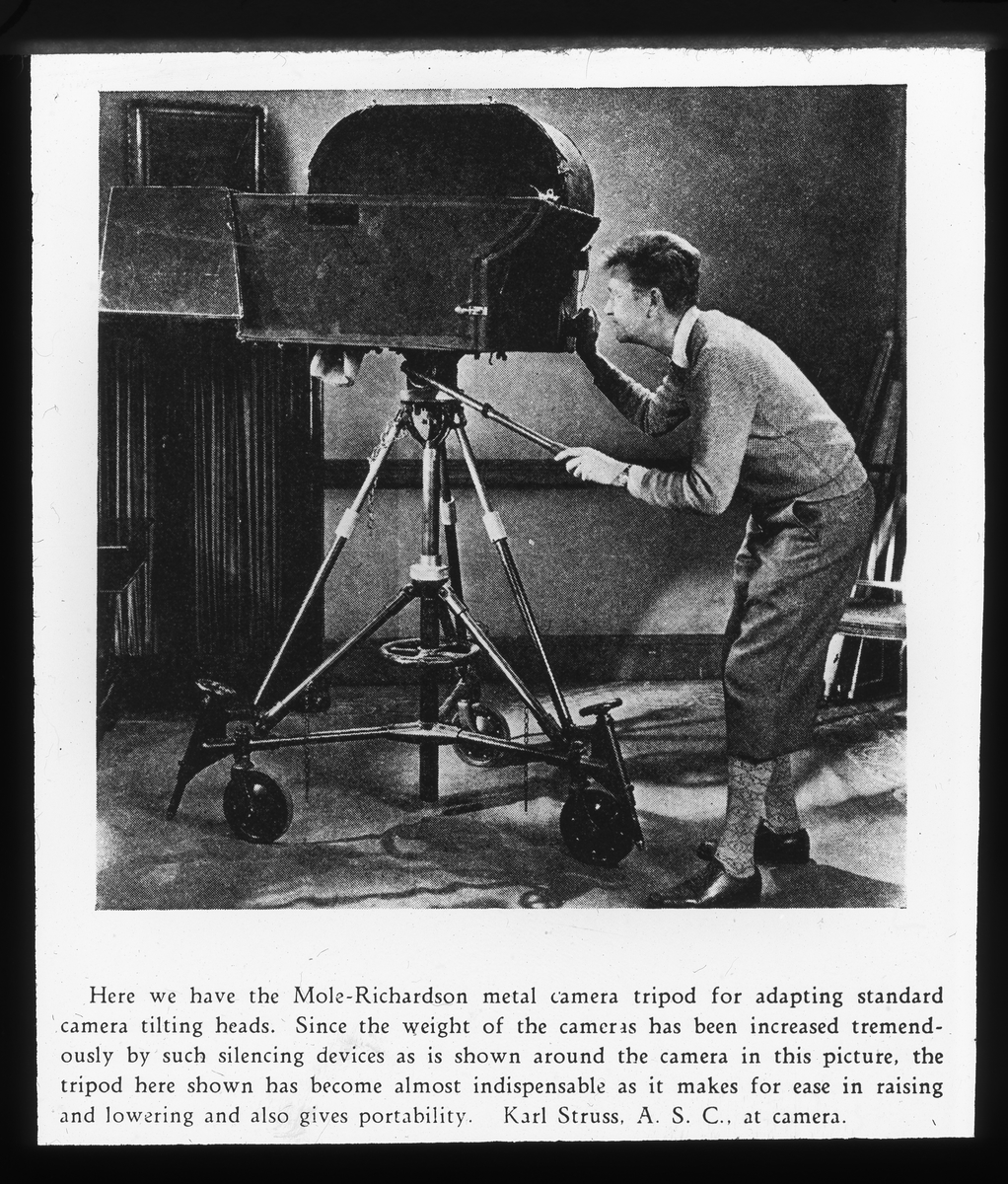 Kamerastativ i metall med vridbart,sänk- och höjbart huvud. Tystgående vid förflyttning. Tillverkat för tyngre kameror.