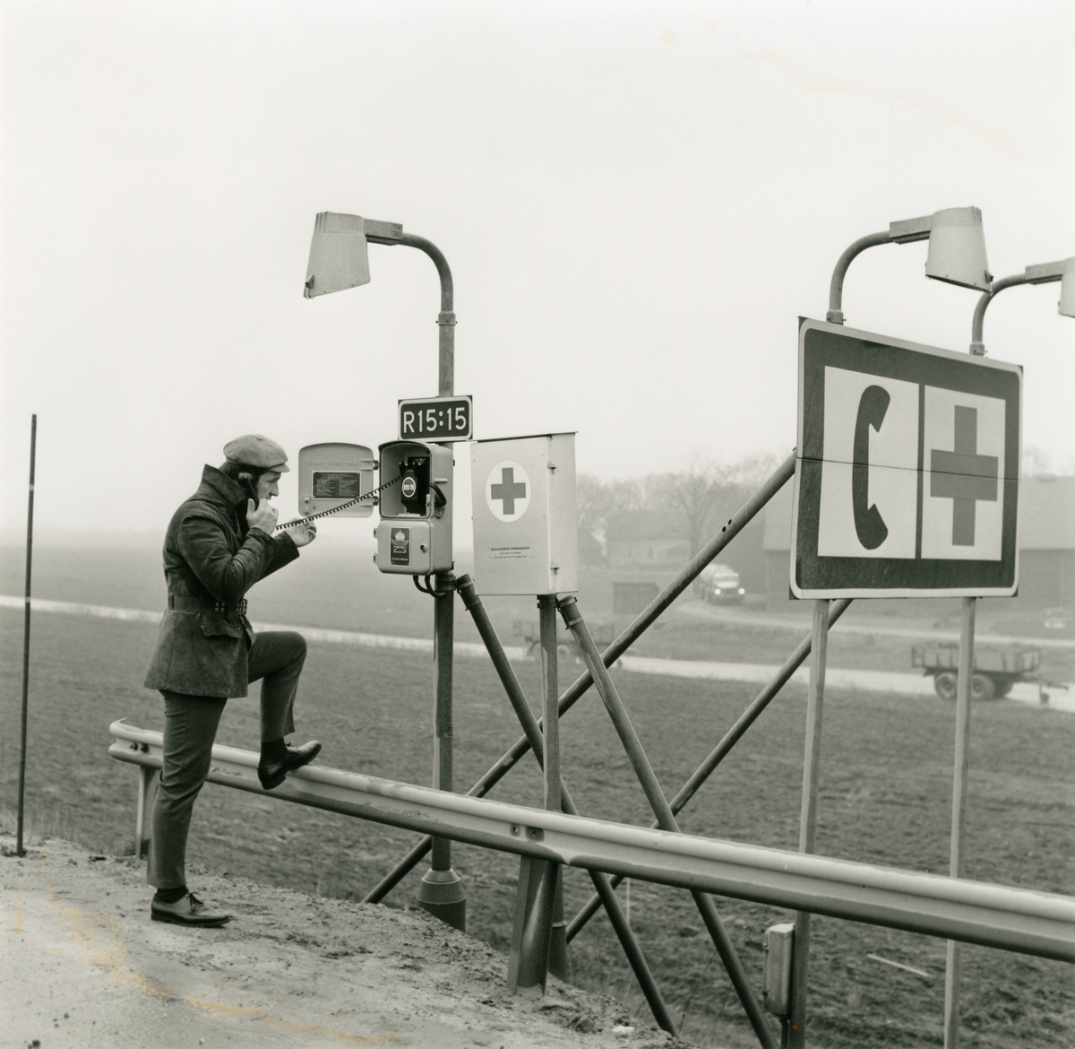 Hjälptelefon längs motorvägen Malmö-Lund 1970.