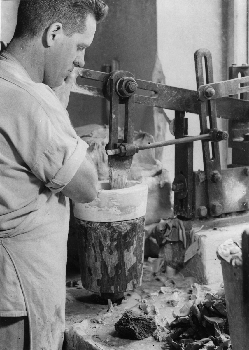Gustavsbergs Porslinsfabrik. Svarvning av kärl.
