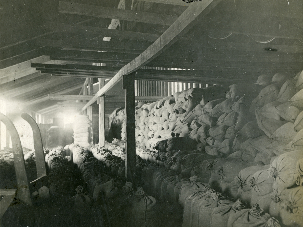 Klagshamns cementfabrik. Lager av packade cementsäckar.