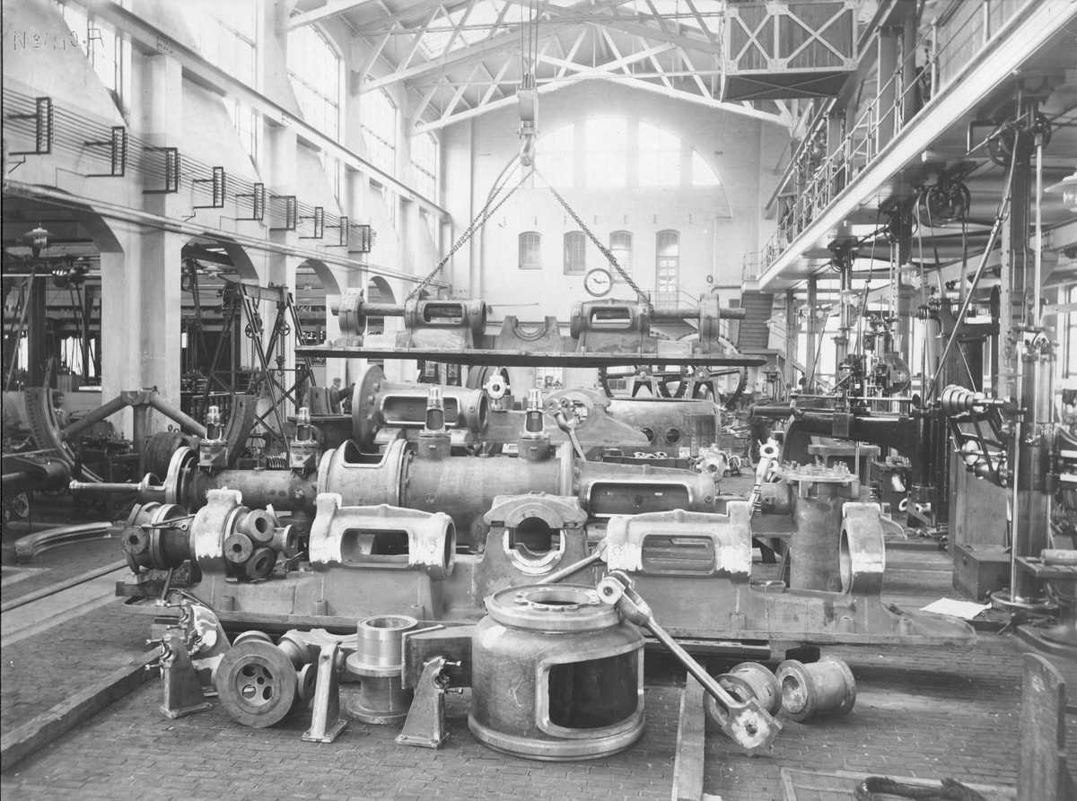 Ludwigsbergs och Luth & Roséns verkstäder i Stockholm. Stora maskinhallen.