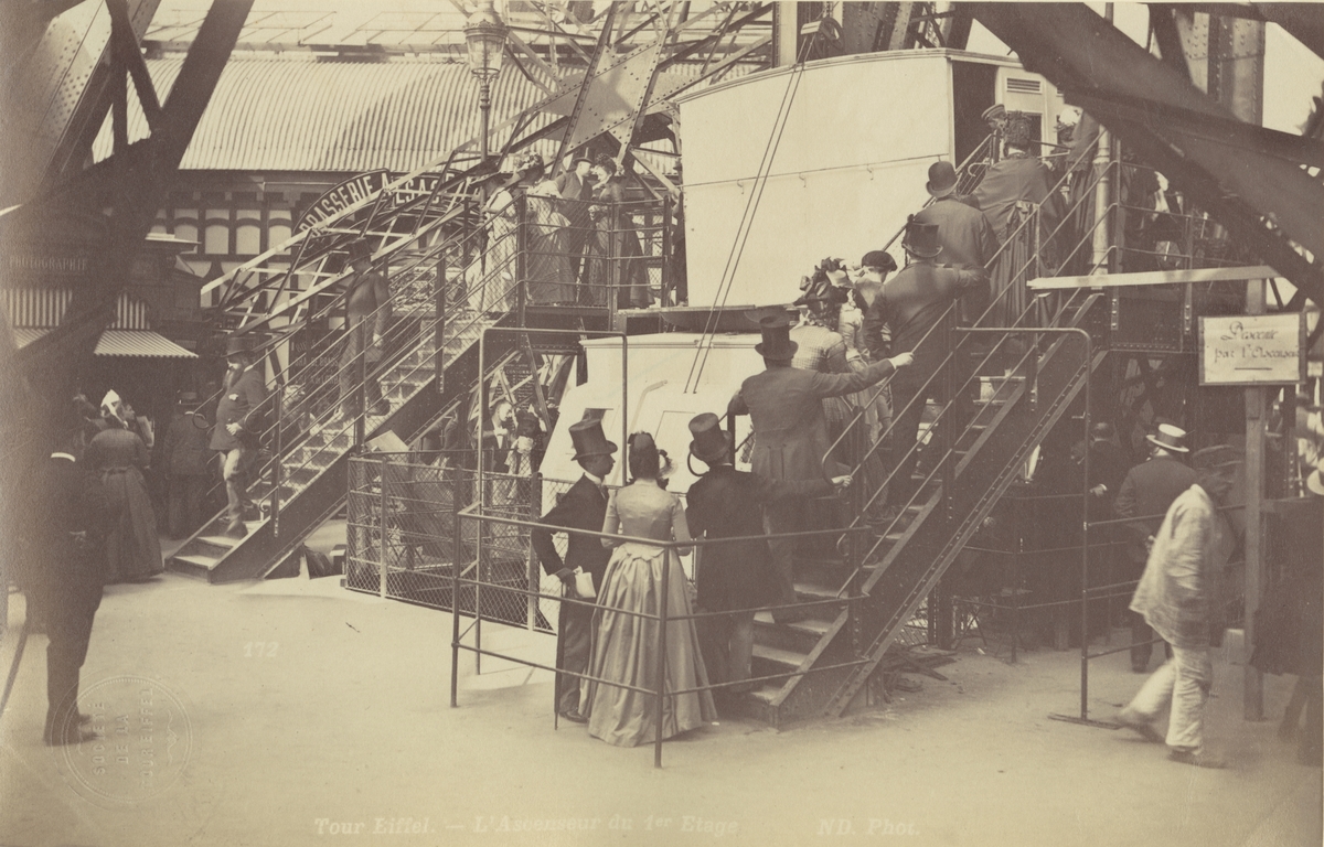 Ur album: Utländska Resan 1890. Kö till Eiffeltornet, Paris.