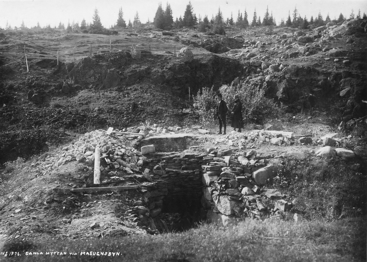 Järnmalmsfält. Gamla hyttan vis Masugnsbyn, Kiruna (Kirunavaara).