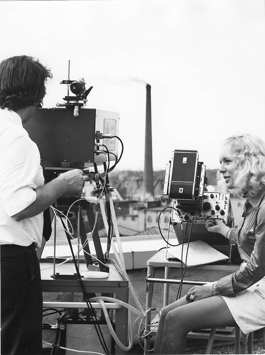 Försök med jätteimpulser som riktas in med ett teleskop på den uppstigande röken från en skorsten. Den utsända laserstrålen reflekteras av rökpartiklarna som uppfångas som eko av en fotodiod.