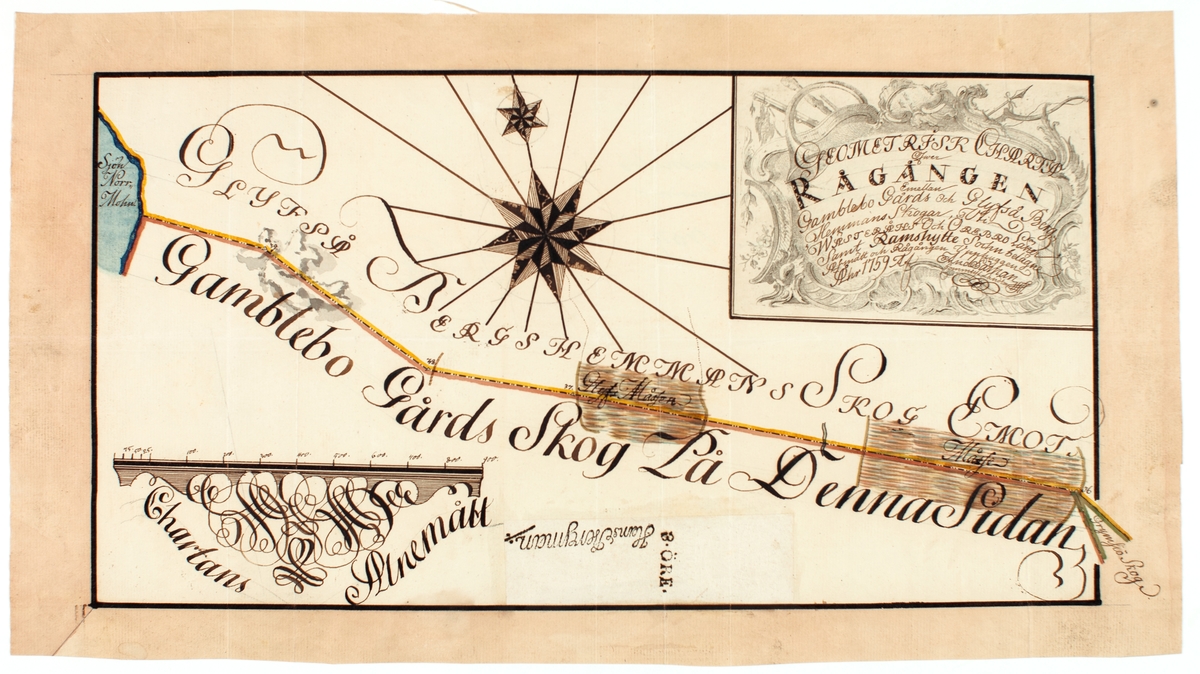 Gammelbo bruk. Rågångskarta emot Glifsta hammar 1759.