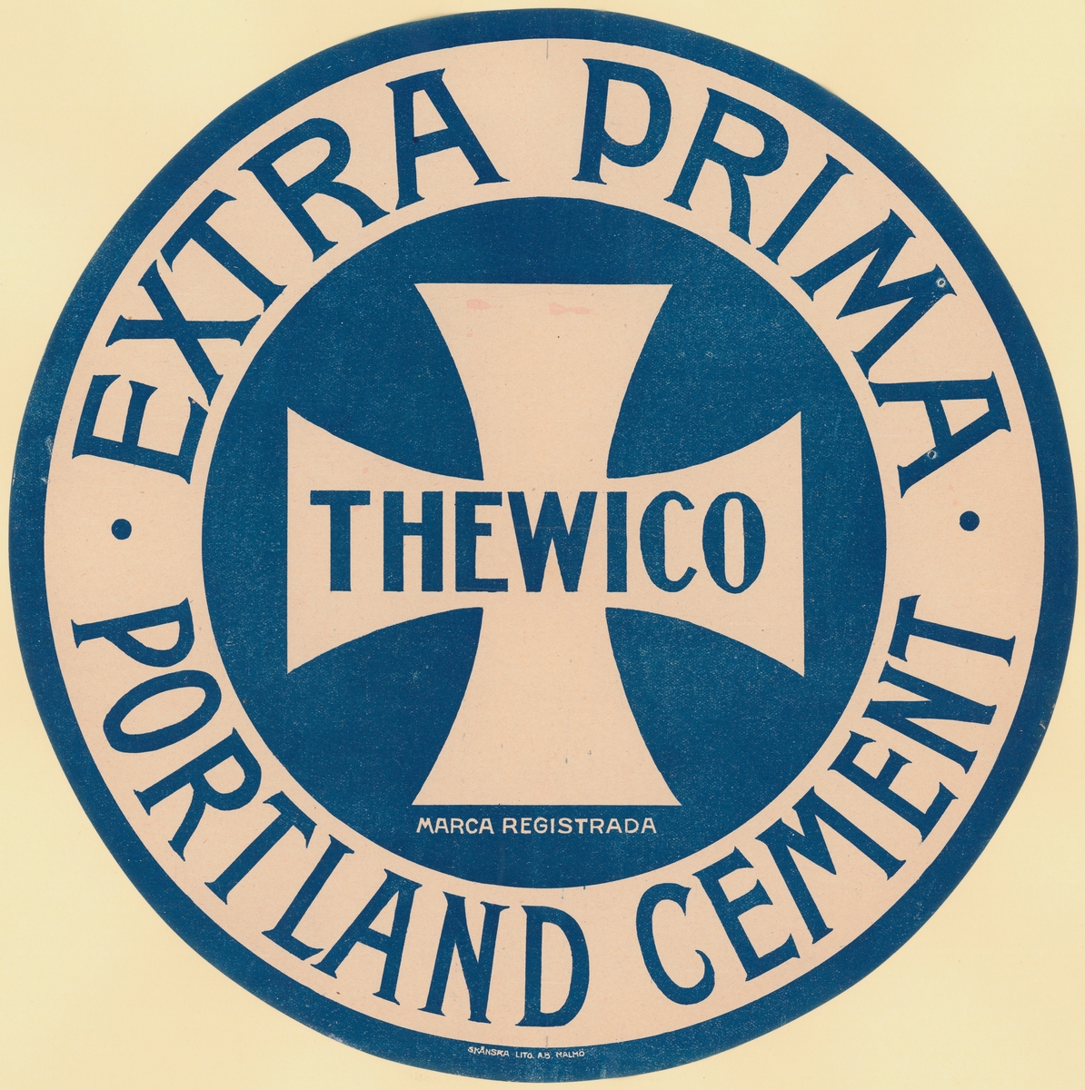 Fabriksmärke för cementpåsar. Thewico. Extra Prima Portland Cement.