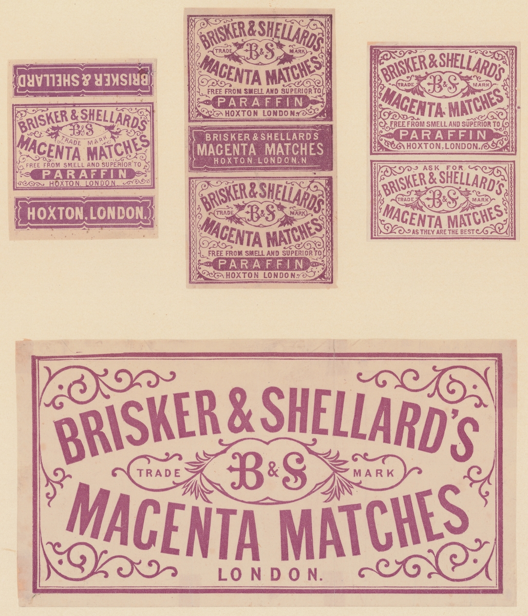 Etiketter för tändsticksaskar, från Svenskt Industri- och Handelsmuseum.