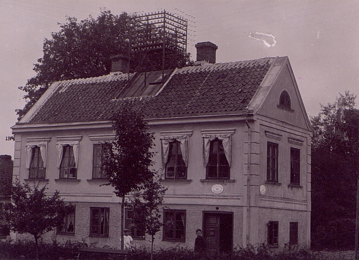 Sölvesborg telefonnät och stationer omkr. 1900. Telefonstation med telefontorn på taket.