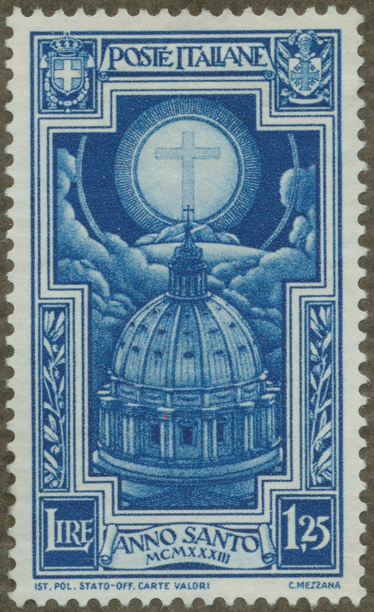 Frimärke från Italien, 1933. Motiv av kupolen på St. Peterskyrkan i Rom.