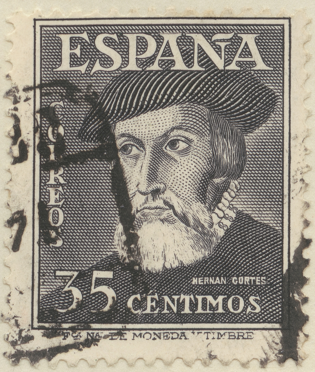 Frimärke från Spanien, 1948. Motiv av Fernando Cortez , 1485-1547 Mexicos Erövrare