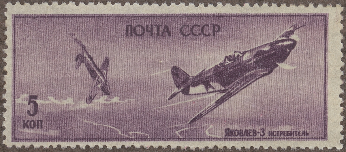 Frimärke från Ryssland, 1945. Motiv av Luftstrid mellan monoplan "-Serien: Luftkrig-"