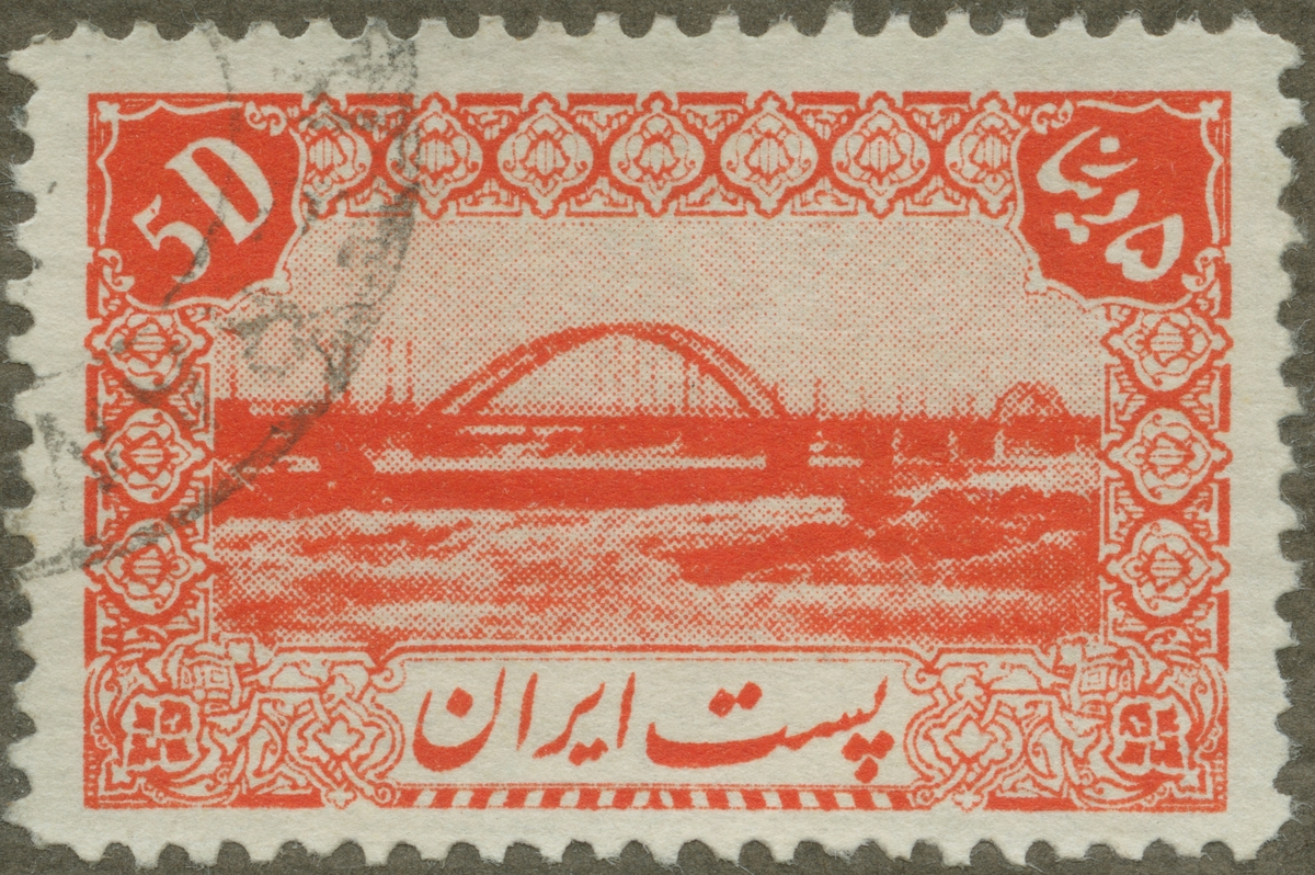 Frimärke från Iran, 1942. Motiv av Svenskbyggd bro vid Ahwaz i Iranska viken. Konstruerad av Professor Karl Ljungberg, Stockholm. 1934-35 och byggd av Svensk Entreprenad AB. (Se Tekn. Tidskr. 15(8 1942.)