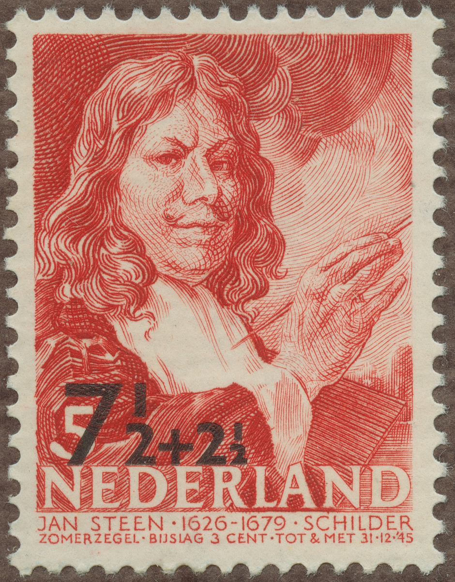 Frimärke från Nederländerna, 1940. Motiv av Jan Steen: (omkr. 1626-1679) Holländsk målare. Humoristiska folklivsbilder.