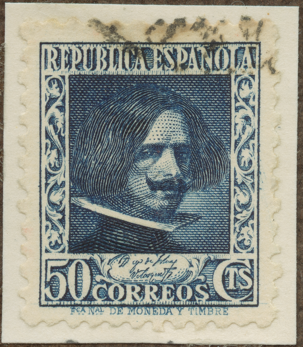 Frimärke från Spanien, 1936. Motiv av Diego Velasquez 1599-1660 Konstnär, målare.