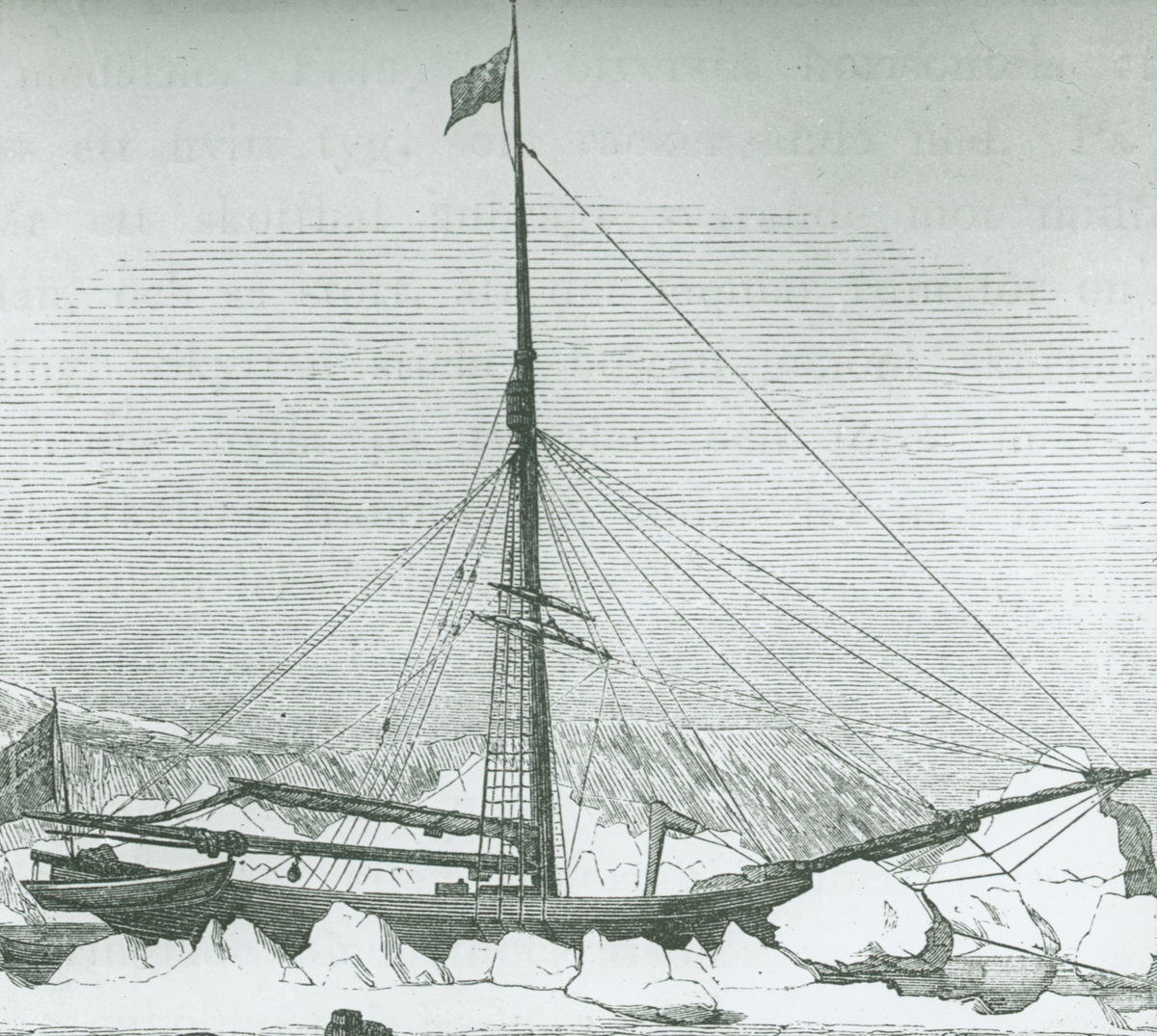 Teckning med motiv av fartyg bland isberg.
