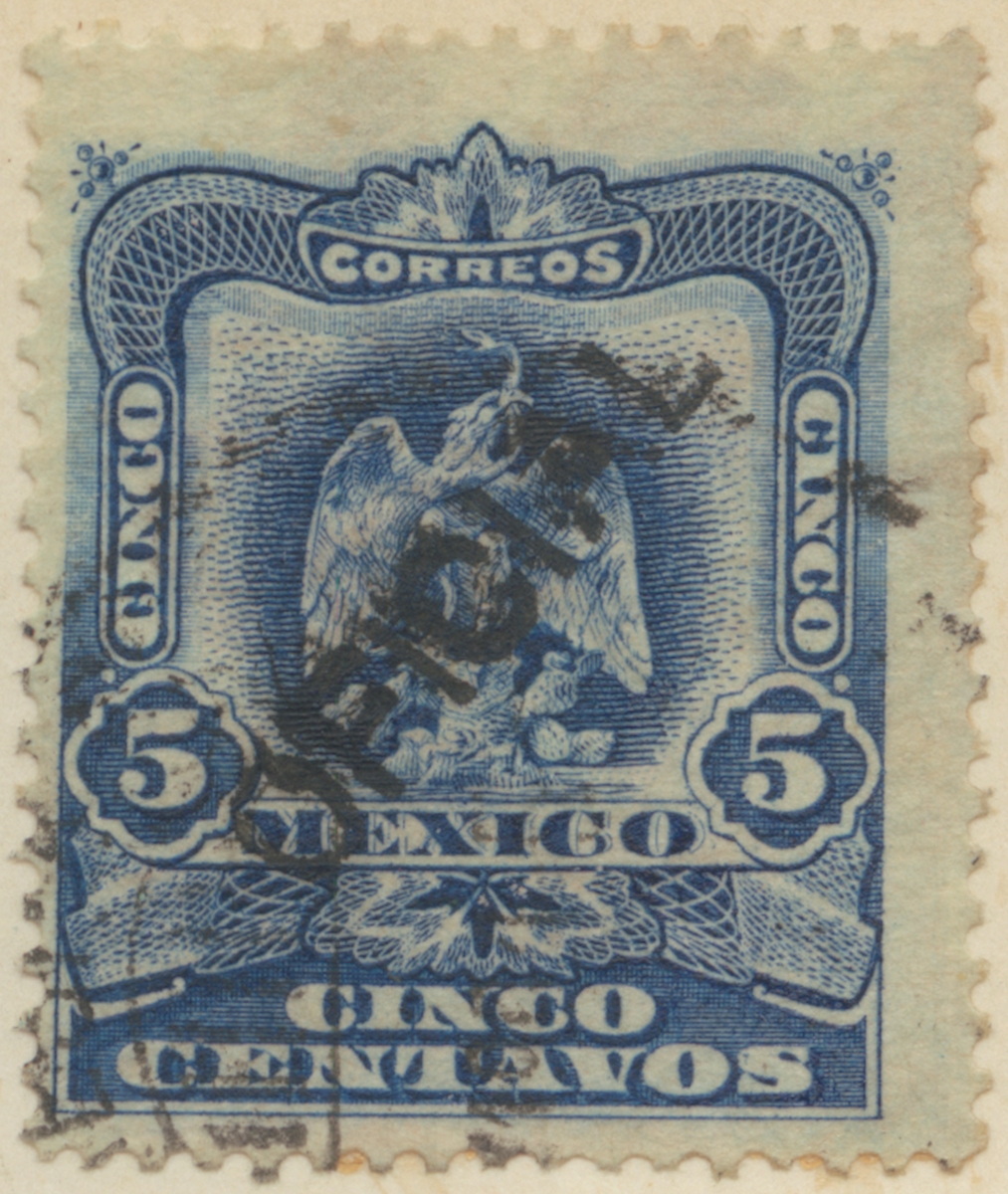 Frimärke från Mexico, 1899. Motiv av ÖRN med ORM