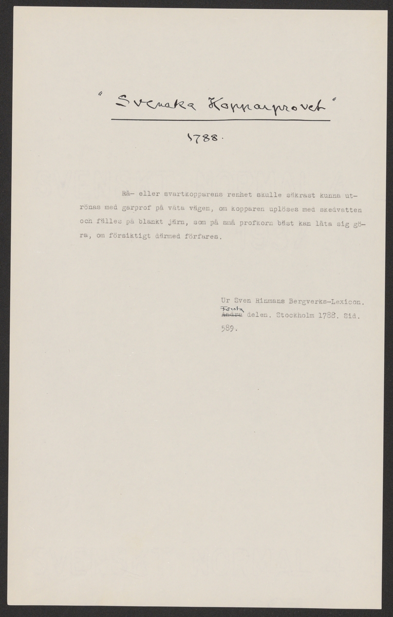 Ämnesordnade handlingar av bergshistoriskt och bergstekniskt innehåll.
