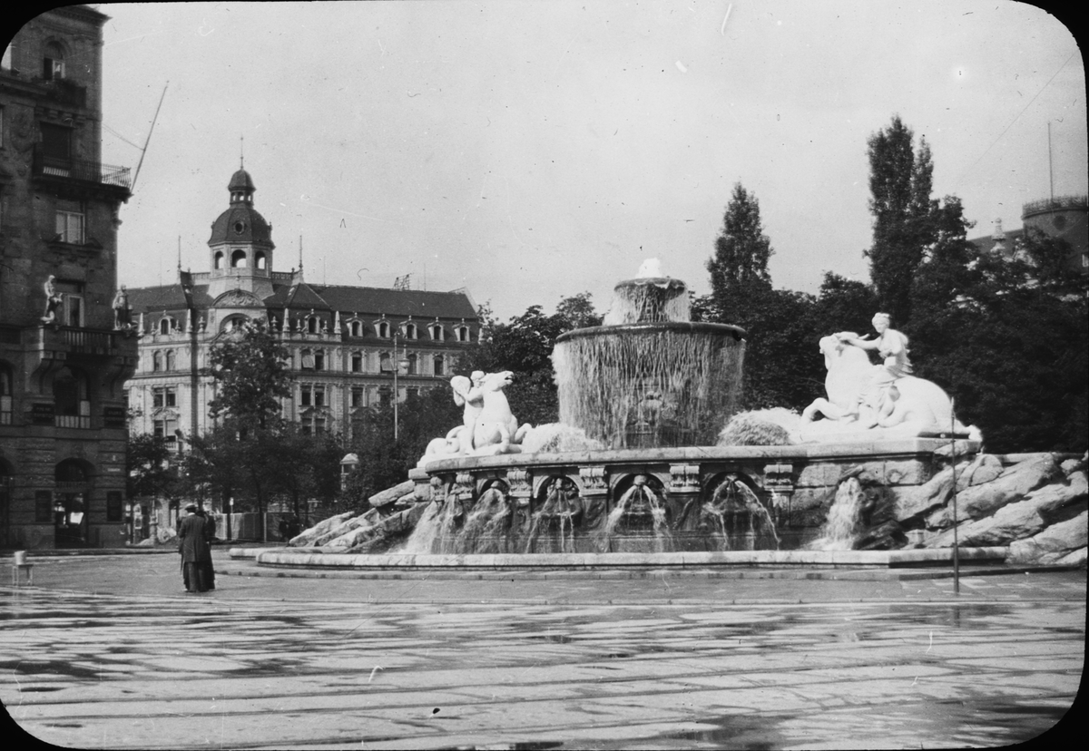 Skioptikonbild med motiv av Wittelsbacherbrunnen i München.