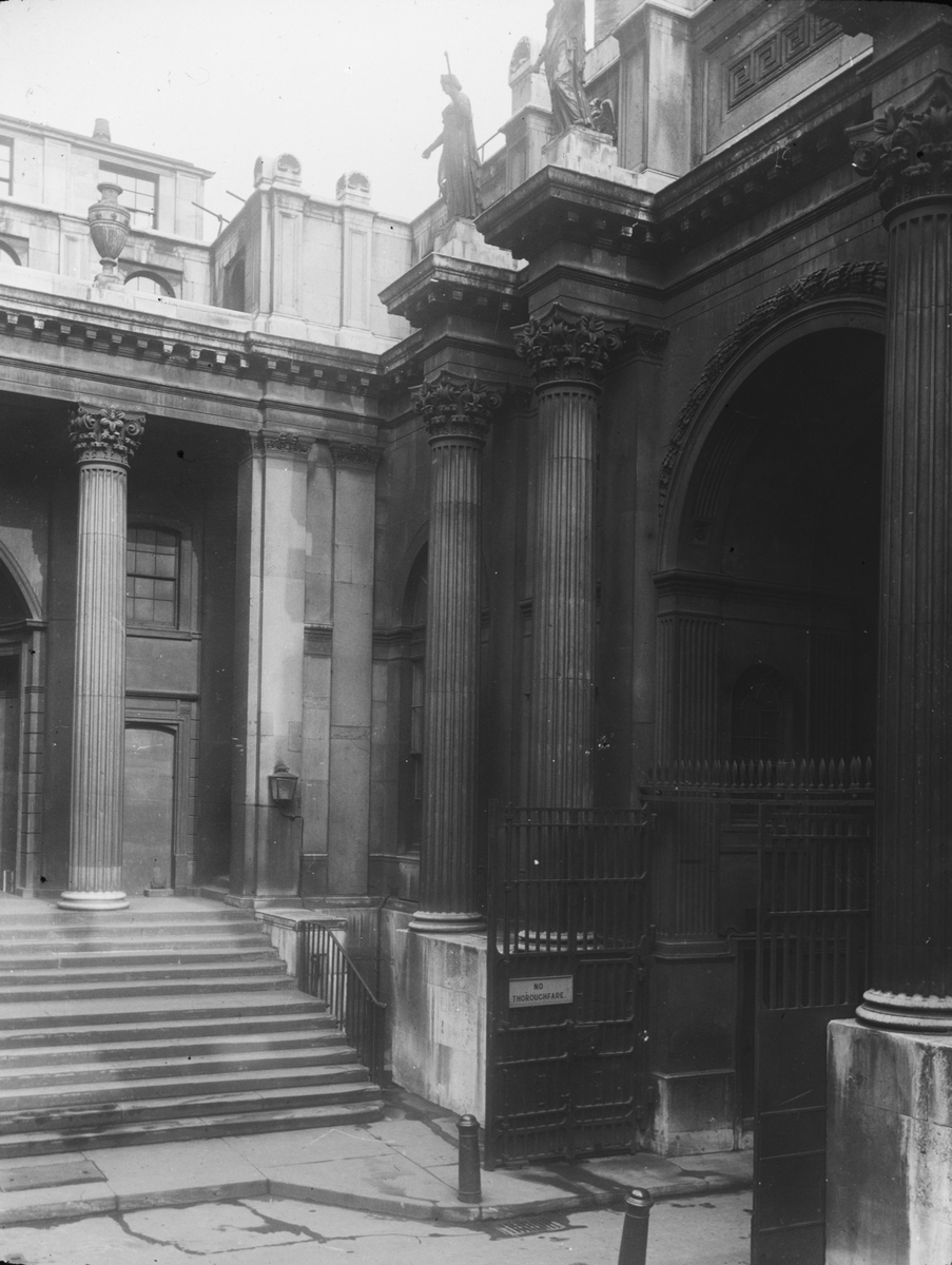 Skioptikonbild. Arkitektoniskt motiv från Bank of England, arkitekten John Soanes byggnad som revs under 1920-talet.