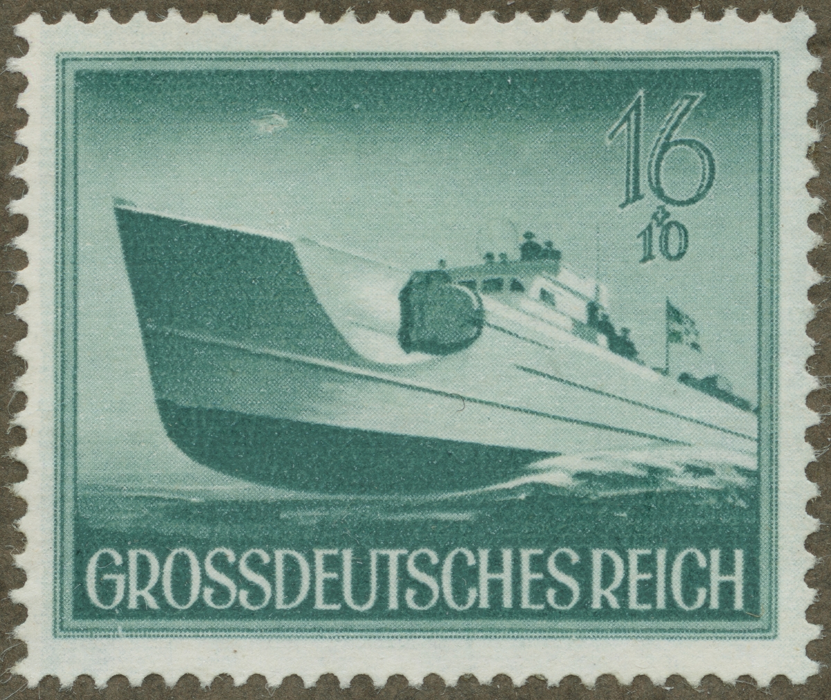 Frimärke från Tyskland, 1944. Motiv av Tysk motor-torpedbåt "-Hjälte Minnesdag Serie-"
