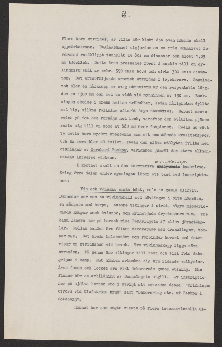 Titel: Diverse allmänt om bergshistoriskt material. Ämnesordnade handlingar av bergshistoriskt och bergstekniskt innehåll. Ur Carl Sahlins bergshistoriska samling.