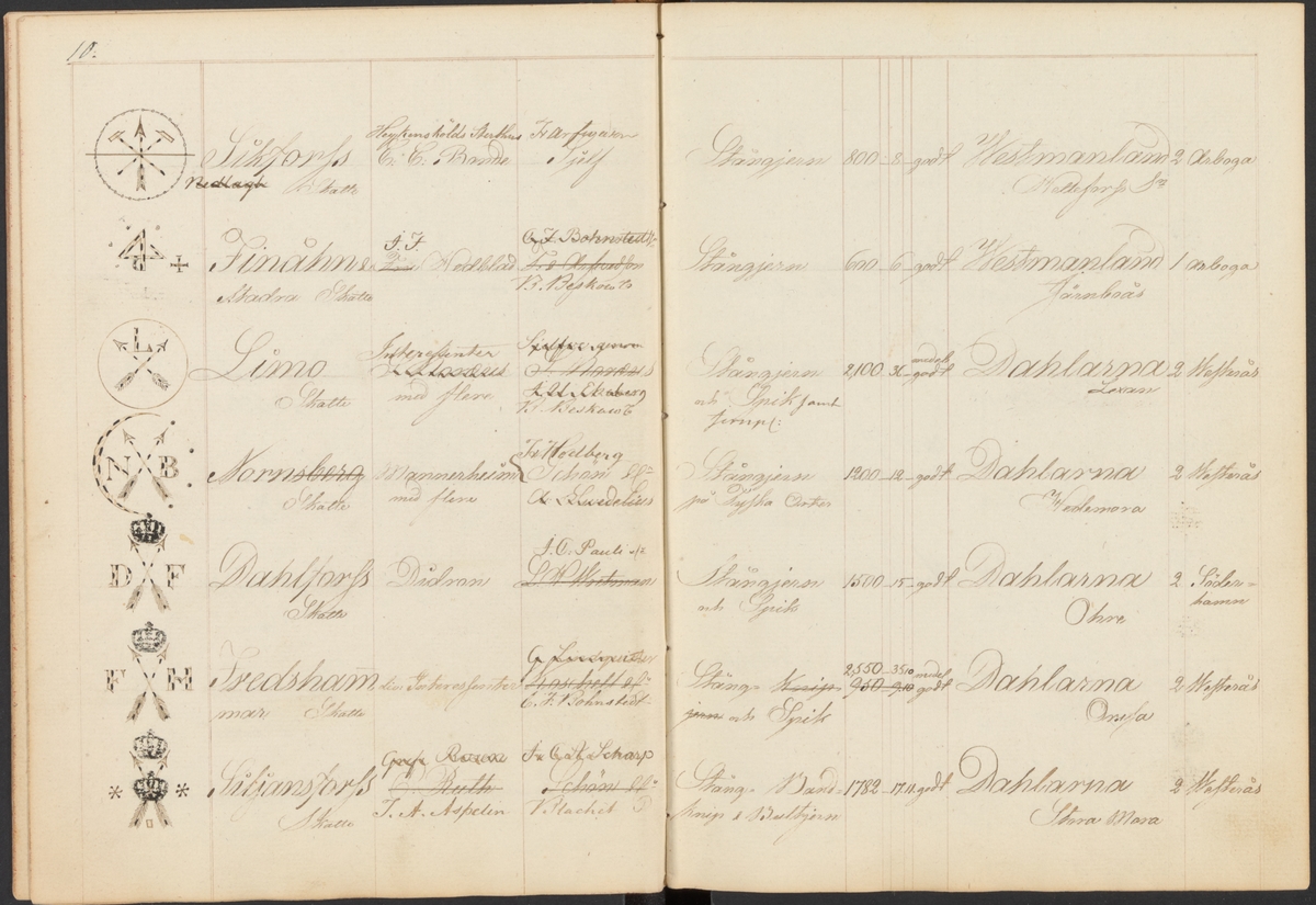 Titel: Stämpelbok över Stockholms stora järn- och metallvåg år 1818 med register. Handskrift. Tillägg och rättelser från 1828. Ur Carl Sahlins bergshistoriska samling.