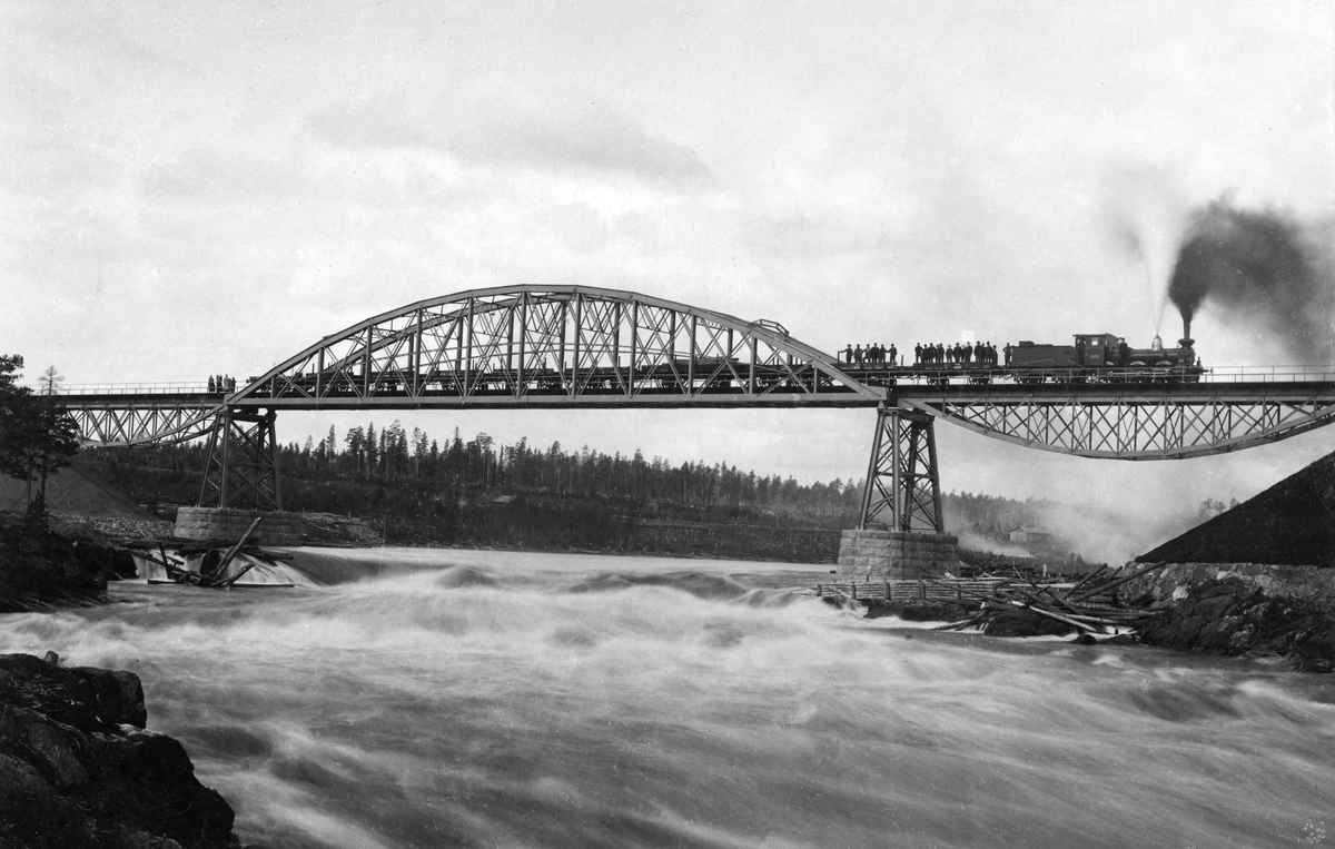 Text på baksidan av bilden: Bron över Skellefte älv vid Rusforsen.
