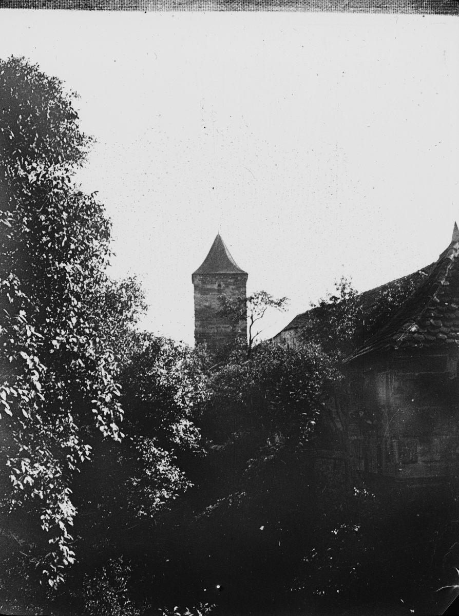 Skioptikonbild med motiv av Röder Thor, torn i stadsmuren, Rothenburg.
