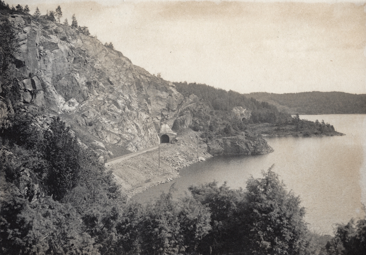 Järnvägstunnlar vid sjön Hällungen i Bohuslän.
