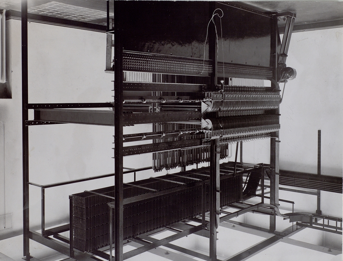 Norra Vasa. Norrtullsgatan 47 år 1919. Hultmans ledningsväljare- stativ med 10 000-väljare.