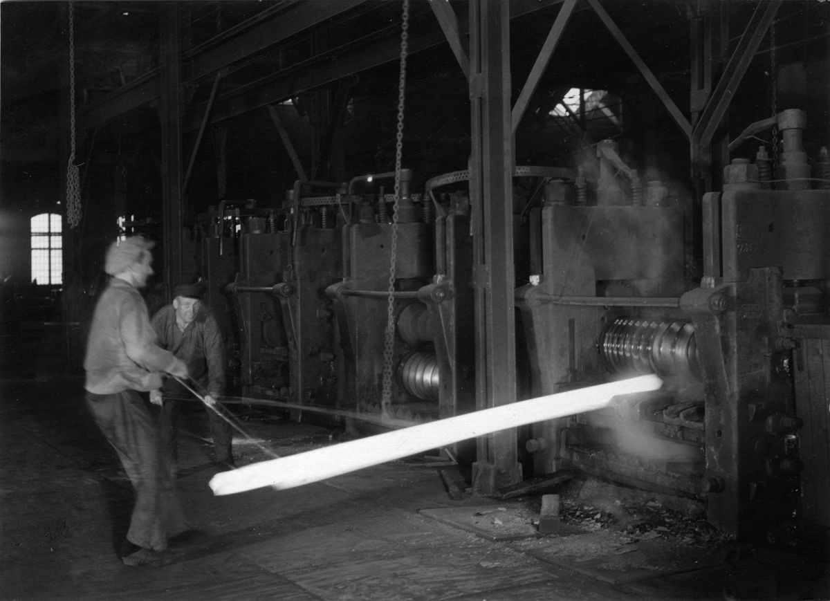Hagfors bruk. Stångstålsvalsning vid mediumverk.