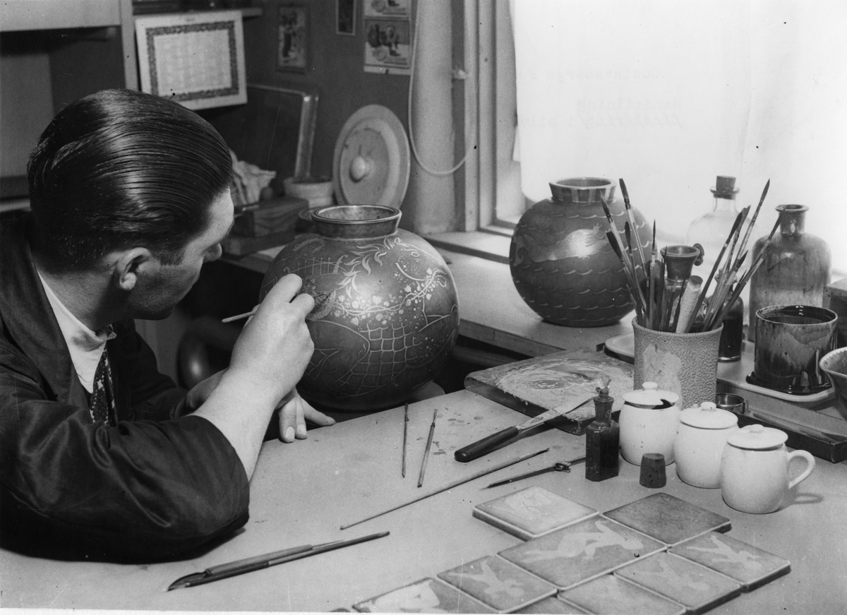 Gustavsbergs Porslinsfabrik. Handmålning i silver av serien Argenta.