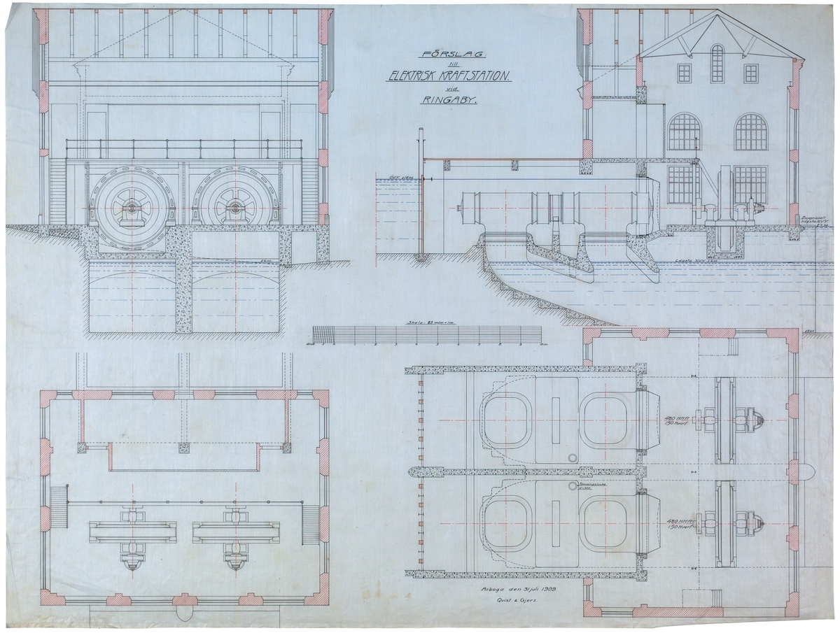 Ritning över förslag till elektrisk kraftstation vid Ringaby.