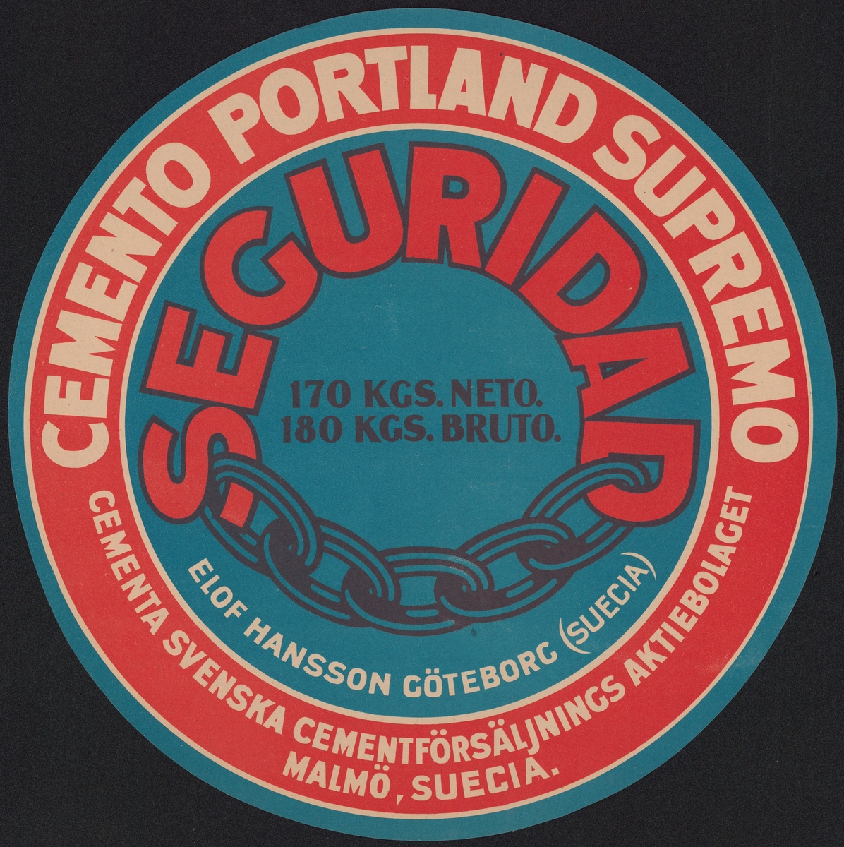 Fabriksmärke för cementpåsar. Cementa. Svenska Cementförsäljningsaktiebolaget. Portland Cement.