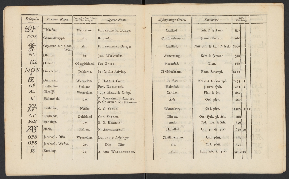 Stämpelbok öfver det brukssmide som vanligen ankommer till Götheborgs wåg.