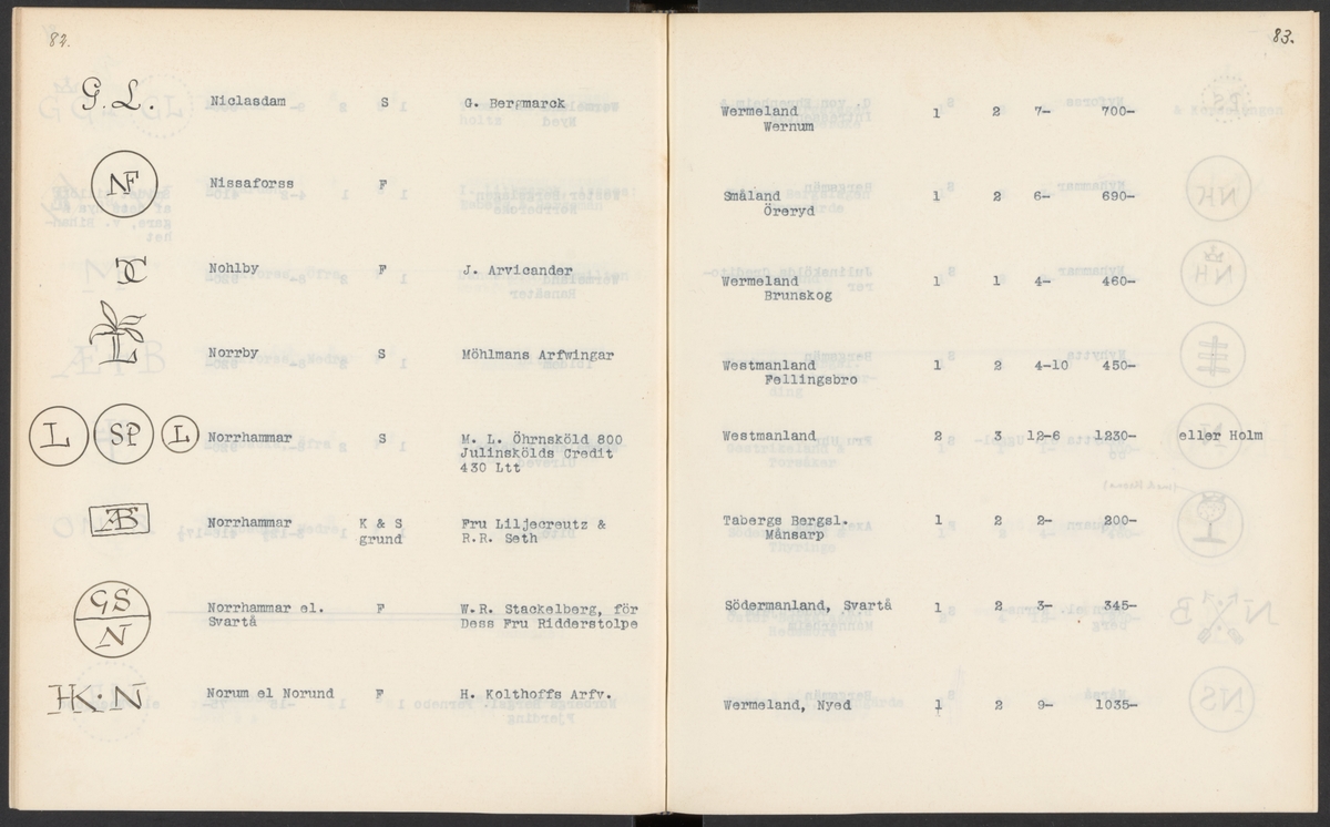 Titel: Stämpelbok för Sveriges "Bergwärk I & II". Maskinskrivna avskrifter, 1913. Ur Carl Sahlins bergshistoriska samling.