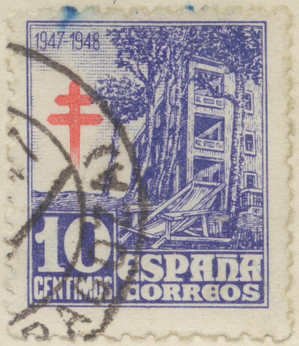 Frimärke från Spanien, 1947. Motiv av Tuberkulos- Sjukhus -TBC-märke-